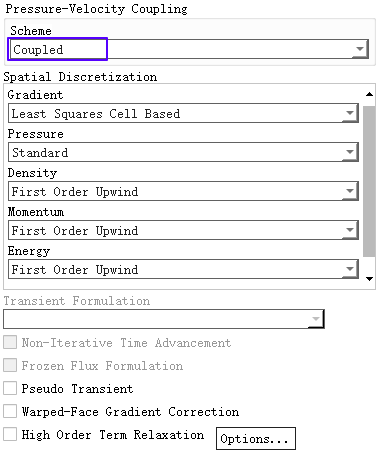 注:不要问为什么不使用密度基求解器。没人敢说压力基求解器不可以用于超音速计算,这里只是不想用密度基求解器而已。
