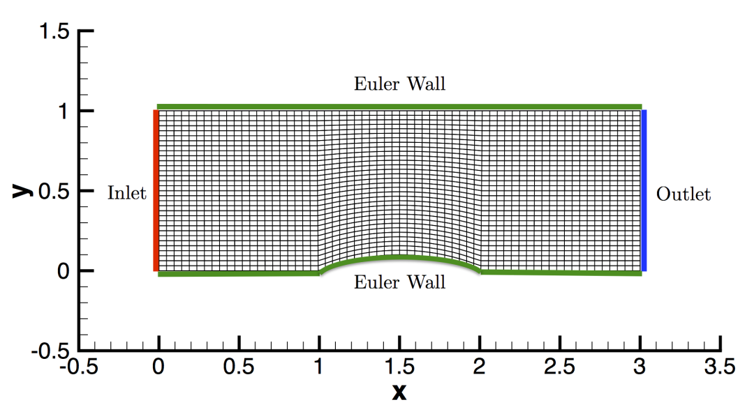 本案例演示利用 SU2求解存在凸起的通道内的无粘流场分布。本案例为SU2自带的案例文件,本系列文章对其结构和内容进行了整理。