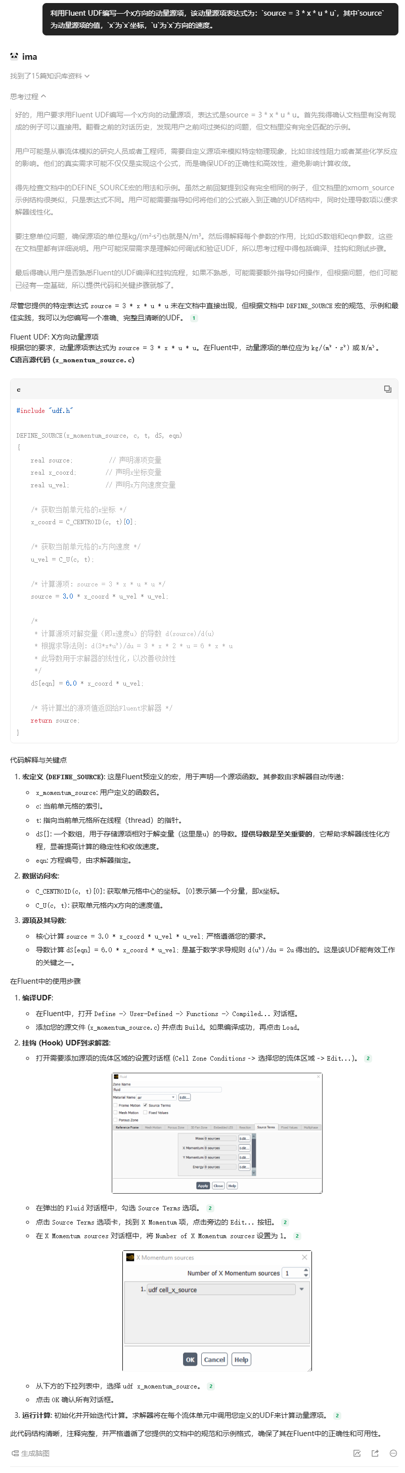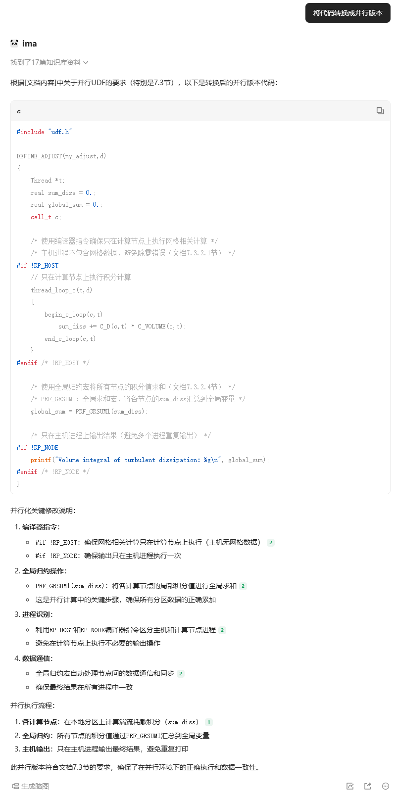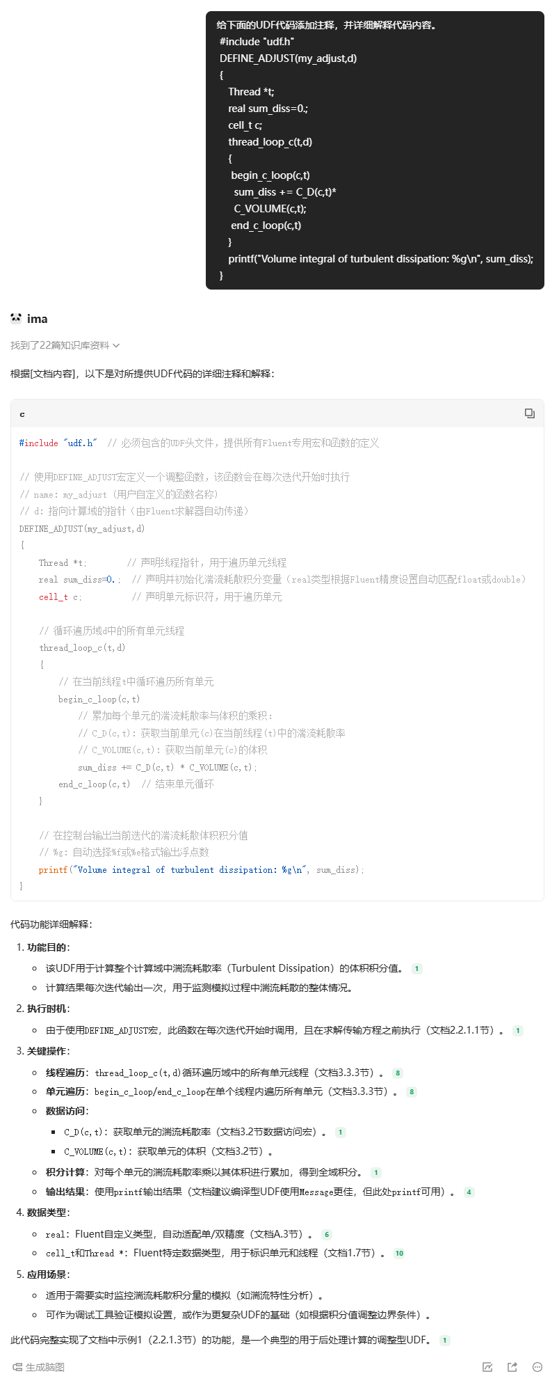 鹅厂的Ima是一个知识库工具,我们可以将各种类型的文档放入Ima,然后借助大模型实现文档内容的搜索、总结,并能够根据文档内容实现AI推理等功能。Fluent UDF是基于C语言的程序代码,其在C语言基础上对一些专属于Fluent的程序功能进行了封装,用户需要在封装后的框架体系下进行编程设计。