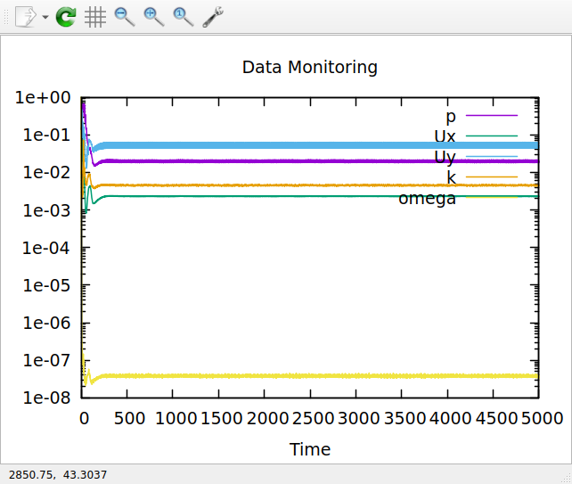 foamMonitor -l postProcessing/residuals/0/residuals.dat &显示如下图所示的残差。