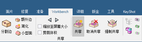 也可以点击Workbench下的共享按钮,软件会自动搜索几何模型中的共享面,用户可以决定是否进行共享。
