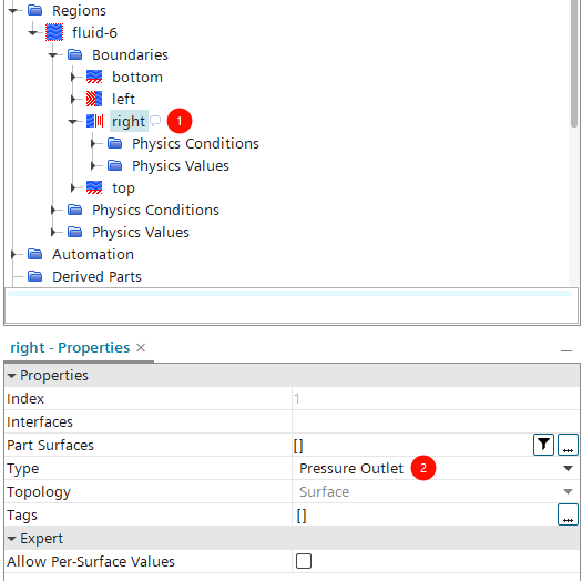 点击节点 right ,指定 Type为 Pressure Outlet ,如下图所示