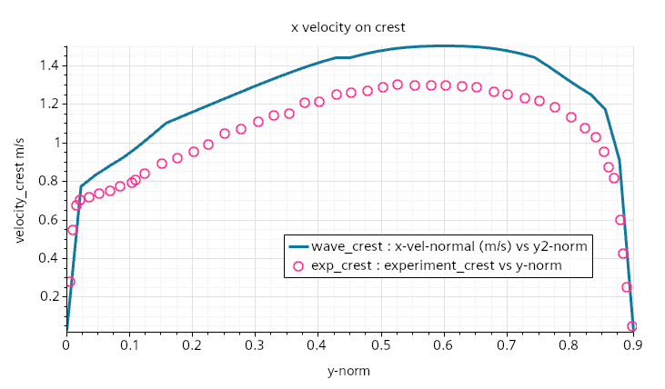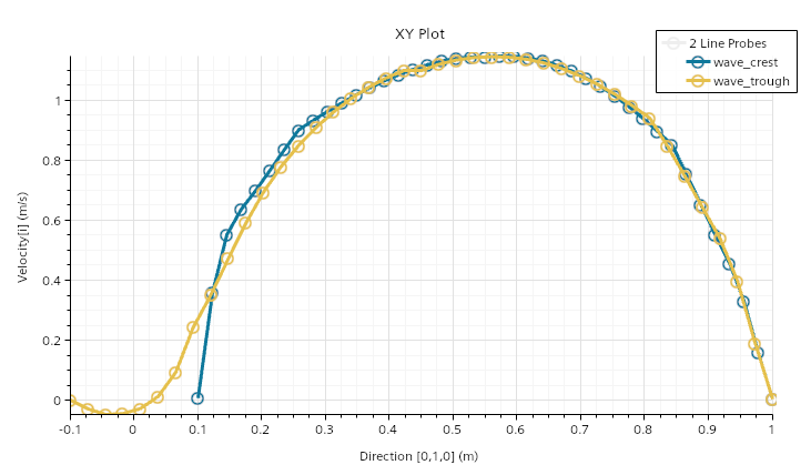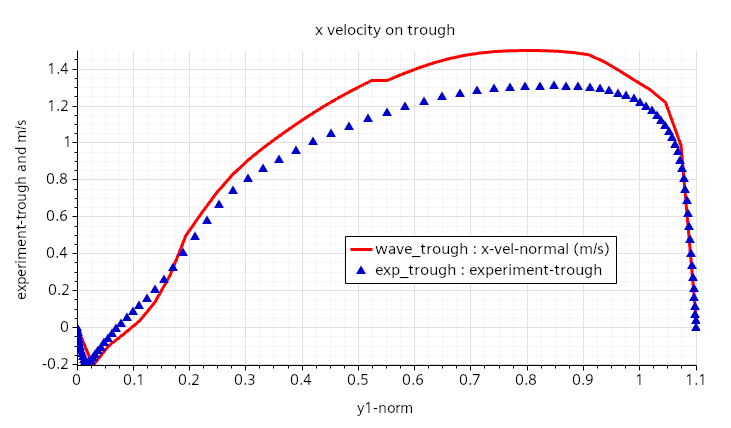 验证数据来自wave_through及wave_crest上沿y轴方向的无量纲x方向的速度。