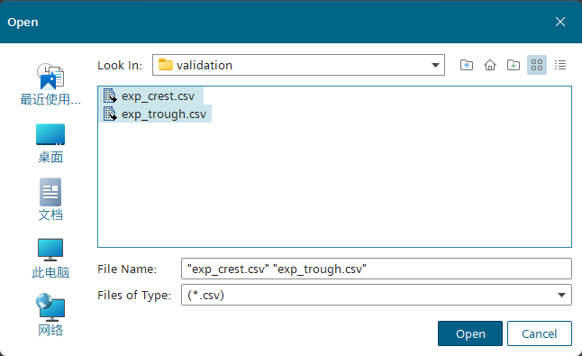 参考数据:J.D. Kuzan, “Velocity Measurements for Turbulent Separated and Near-Separated Flows Over Solid Waves”. Ph.D. thesis. Department of Chemical Engineering, University of Illinois, Urbana, IL, 1986.
