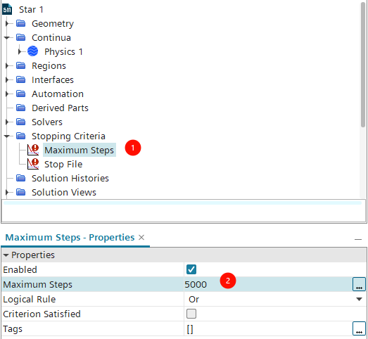 选中节点 Stopping Criteria > Maximum Steps ,指定参数 Maximum Step为 5000