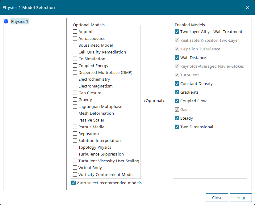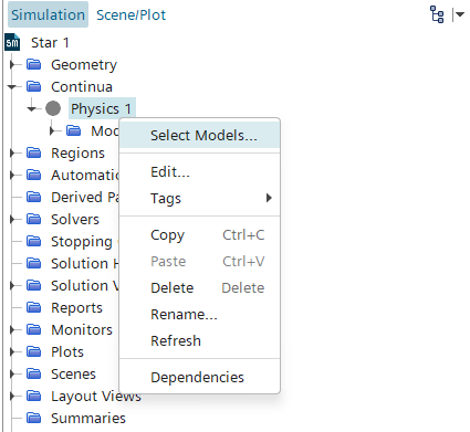 右键选中模型树节点 Continua > Physics 1 ,点击弹出菜单项 Select Models… 打开模型选择对话框
