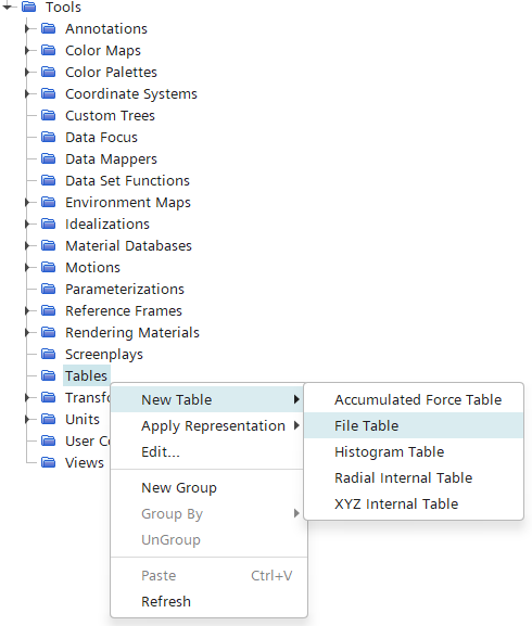 右键选择节点 Tools ,点击弹出菜单项 New Table > File Table