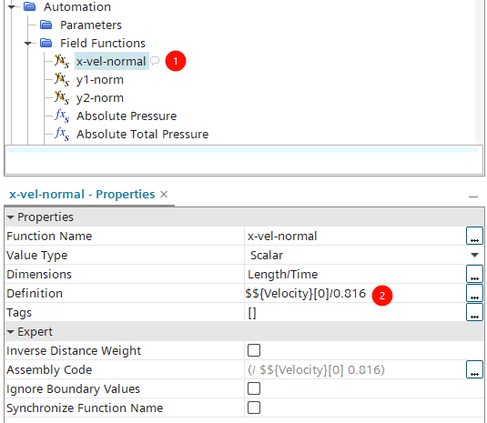 创建场变量 x-vel-normal为$${Velocity}[0]/0.816