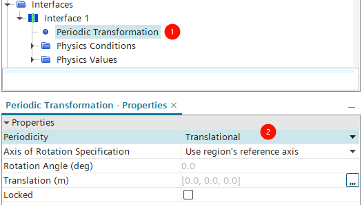 选择节点 Interface 1 > Periodic Transformation ,在属性窗口中指定 Periodicity为 Translational ,如下图所示