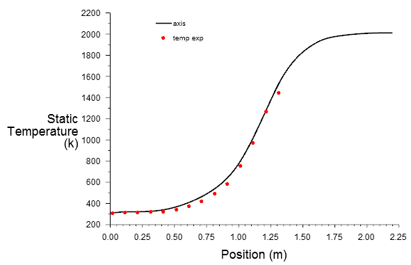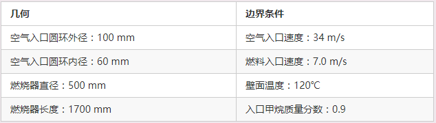 采用稳态计算,计算模型为2D轴对称模型,采用Eddy Dissipation计算甲烷燃烧。
