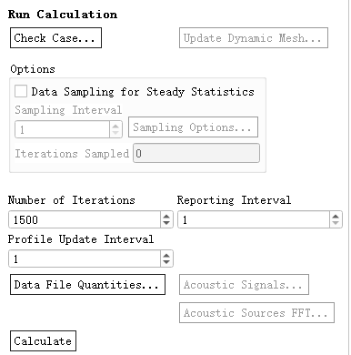 鼠标双击模型树节点Run Calculation,右侧面板如下图所示,设置Number of Iterations为1500