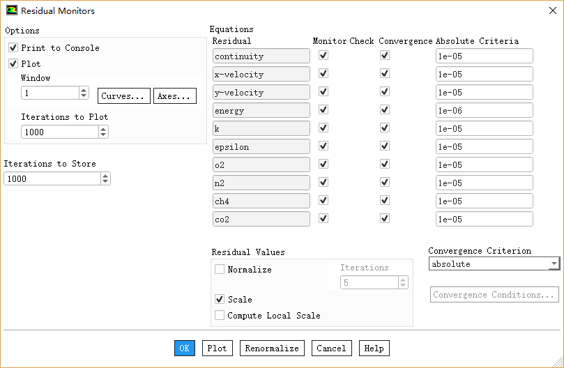 如下图所示,设置除energy外其他所有变量的残差为1e-5