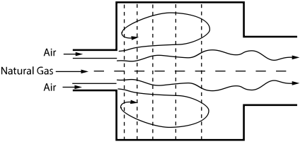 模型如下图所示。空气与天然气分别从不同的入口进入燃烧器,燃料气中甲烷质量分数90%,氮气10%。
