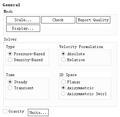 鼠标双击模型树节点General,右侧面板采用默认设置2D Space为Axisymmetric