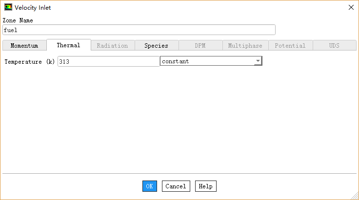 鼠标双击模型树节点Boundary Conditions > fuel弹出设置对话框