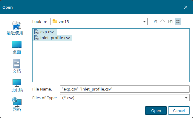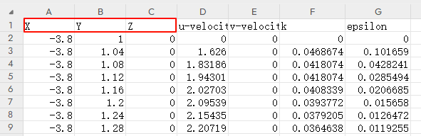 注意表格文件inlet_profile.csv中必须要有X、Y、Z列,且这三列表头必须为大写。