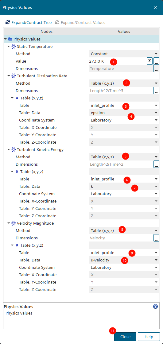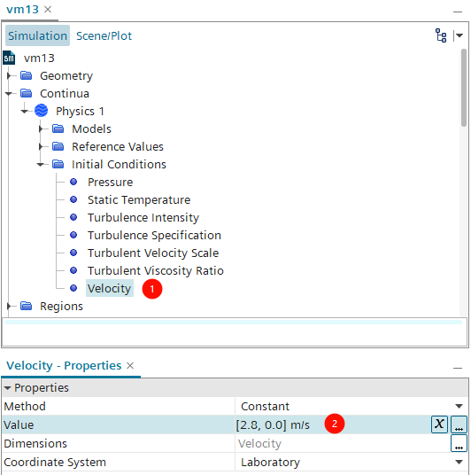 双击模型树节点 Region > fluid-9 > Boundaries > velocity-inlet-6打开设置对话框