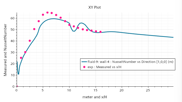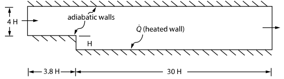 本案例对2D后向台阶的流体流动和对流换热进行了数值模拟。突扩几何导致的流动分离及边界层再附会影响到其后方恒定热流表面的局部换热。本案例利用测量的热流表面的局部Nusselt数分布验证CFD仿真结果。