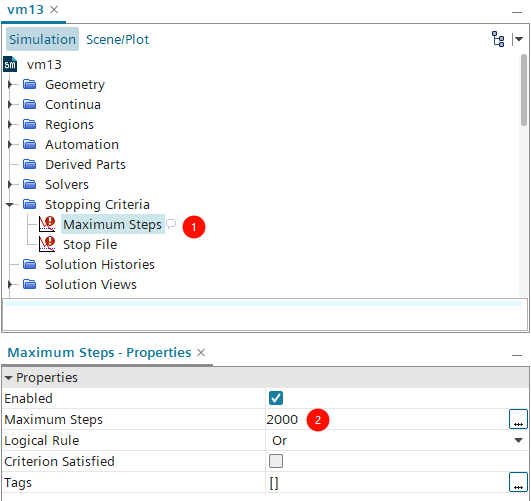 选中模型树节点 Stopping Criteria > Maximum Steps ,指定 Maximum Steps为 2000