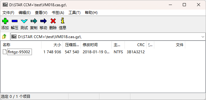 gz的cas文件。gz文件实际上是cas文件的压缩版本。可以使用解压工具将里面的cas文件解压出来(解压后加个.cas的扩展名就可以了)。gz文件的容量要比cas文件小很多,便于保存和转运。但是gz文件读写效率比cas文件慢很多,尤其是当网格数量很多的时候。
