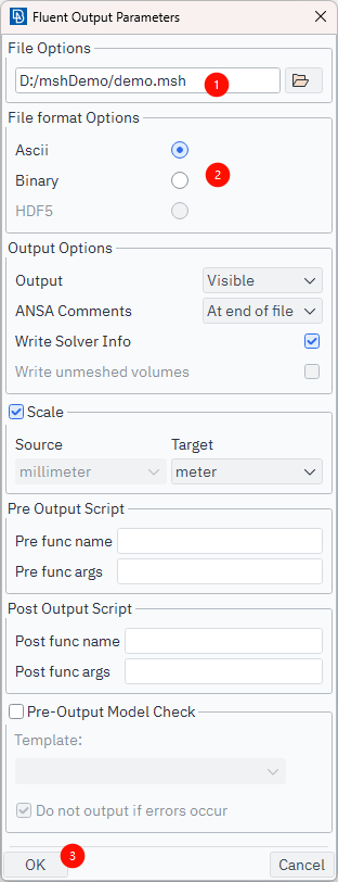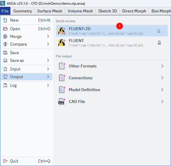 点击菜单 File > Output > FLUENT-2D 打开网格输出对话框