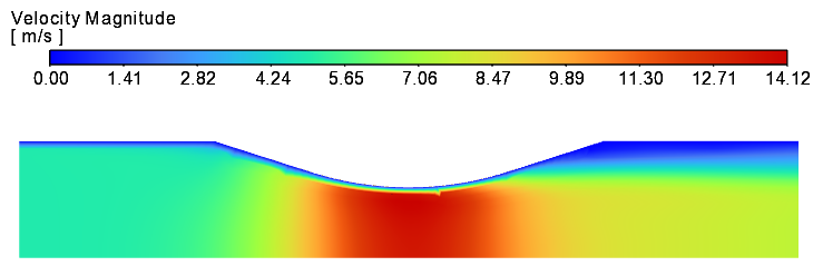 指定入口速度5m/s,指定求解类型为轴对称,计算结果如下图所示。