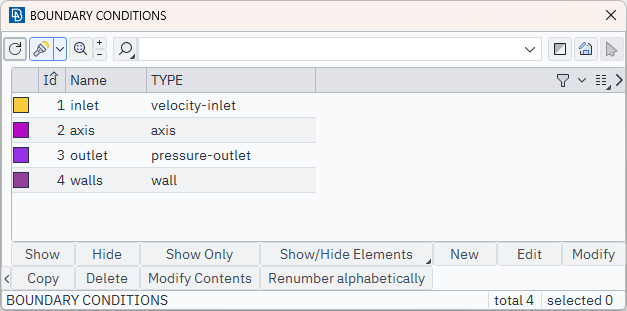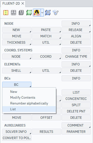 设置完毕后可以点击按钮 BC > List 弹出边界条件对话框