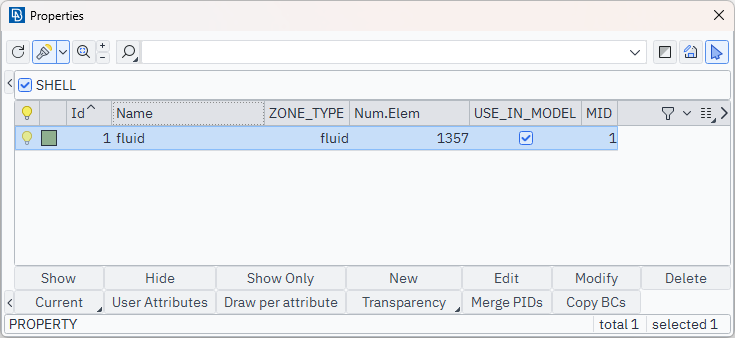 按快捷键 CTRL+P打开 Properties对话框,将计算区域的名称修改为fluid,如下图所示。