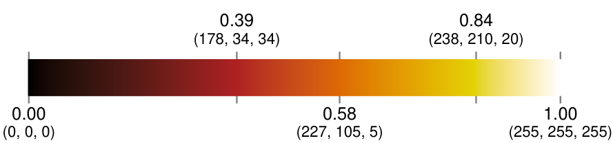 图 7. 黑体辐射色图。所提供的颜色可在 CIELAB 色彩空间中插值。