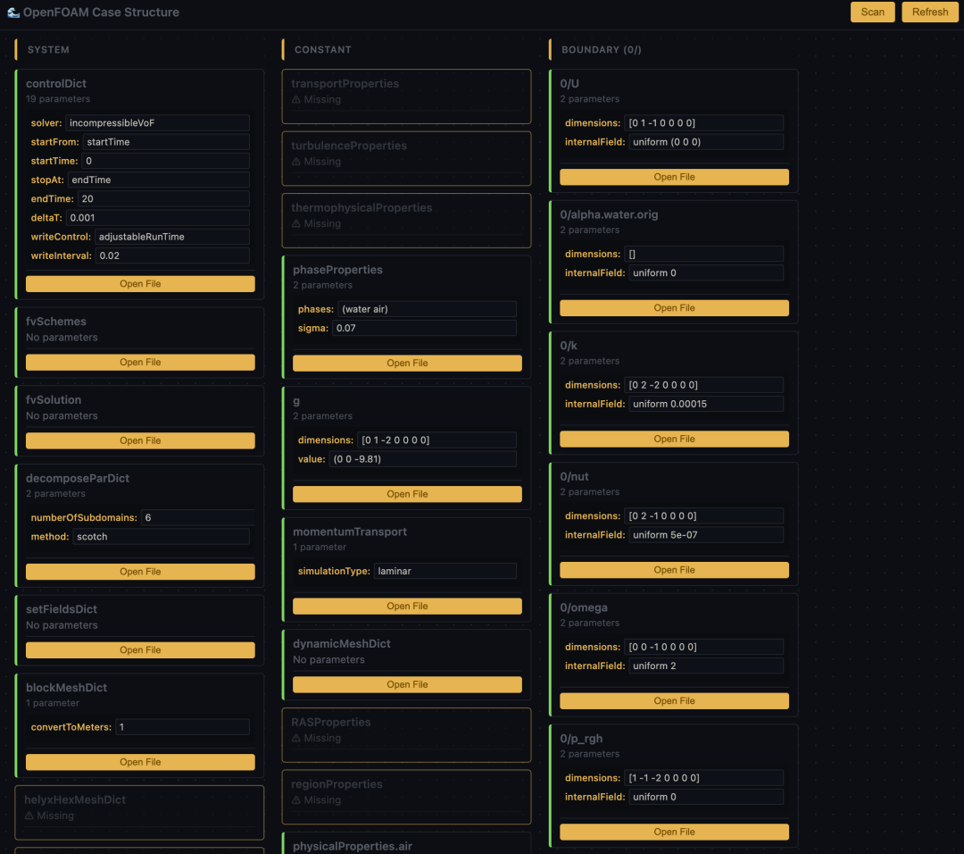 自动识别以下位置的 OpenFOAM 文件: