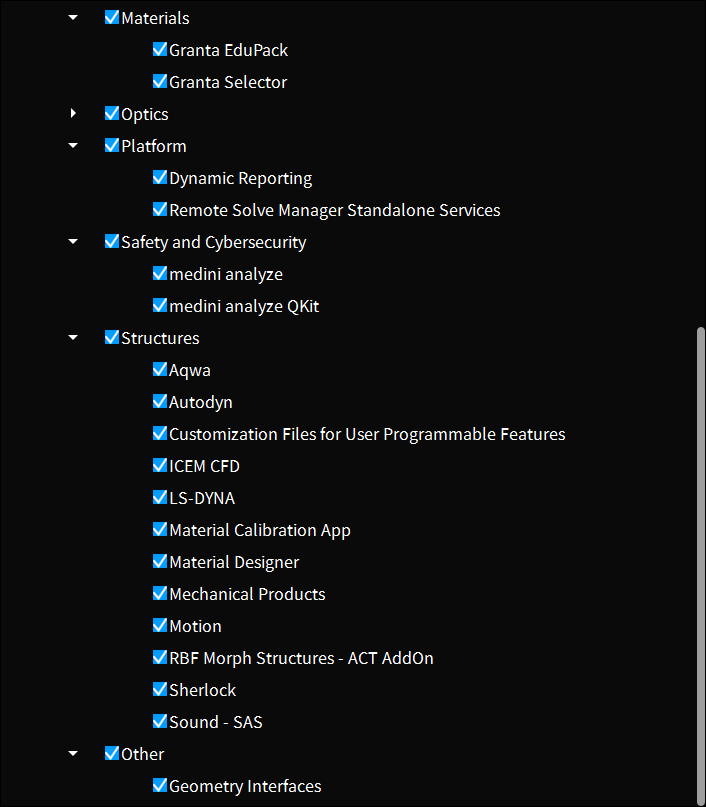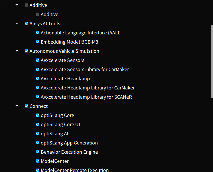 这个是新增的模块,从名字上猜测似乎是AI应用。这个模块一起9.3 GB,个头还是不小的。BGM-M3是一个文本嵌入模型,常用于文本知识库构建和RAG应用中。这模型是中国产的,好像开源了的,以前尝试用过,效果还不错。这波ANSYS用这玩意儿,似乎是想要构建文档知识库。Actionable Language Interface就不知道是啥玩意儿了,以后有空再说。