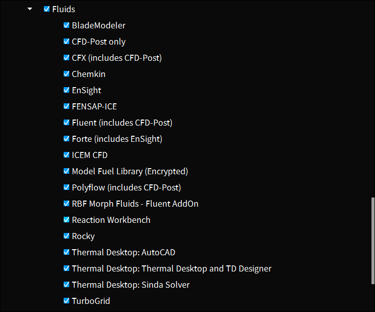 流体仿真模块。总共25.1 GB。新版本加了个RBF Morph Fluids-Fluent Addon,应该是一个用于外形优化过程中网格变形用的插件。以前RBF Morph是一个单独的软件,这会儿集成进来了。