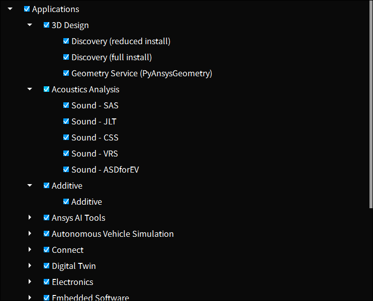 主要是Discovery,全部安装的话大概是9.9 GB。新版本里面多了个 Geometry Service(PyAnsysGeometry)的玩意儿。