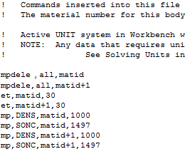 此命令为fluid几何赋予材料属性,定义其单元类型为fluid30,密度为1000,声速为1497