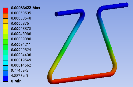 在计算的第二部分,将强迫位移以第一步获取的频率施加到U型管上进行瞬态分析。最后利用Fluent考虑流体流动,以双向耦合形式考虑流体流动过程中U型管的振动。