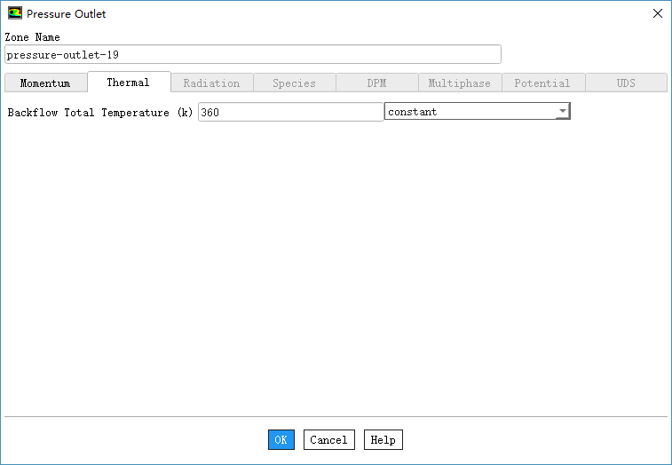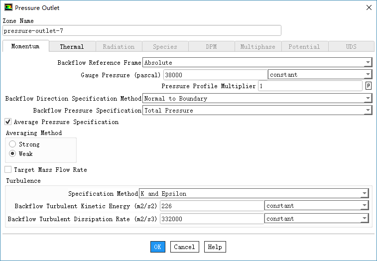 鼠标双击模型树节点Boundary Conditions > pressure_outlet-19弹出设置对话框