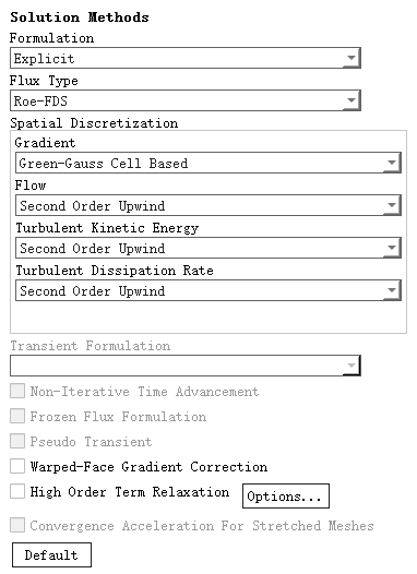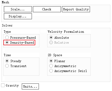 鼠标双击模型树节点General,右侧面板激活选项Density-Based采用密度基求解器