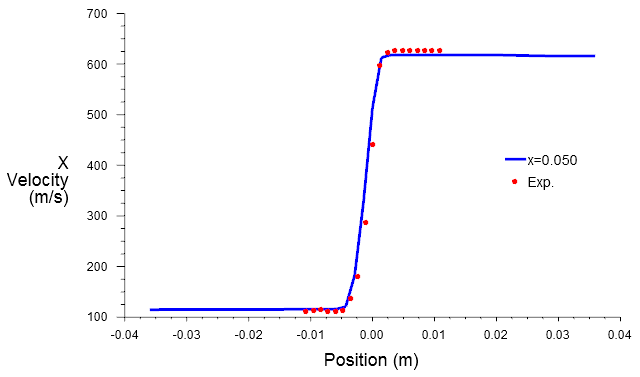 与实验值对比验证x=0.05m面上x方向速度分量沿Y方向分布。对比结果如下图所示。