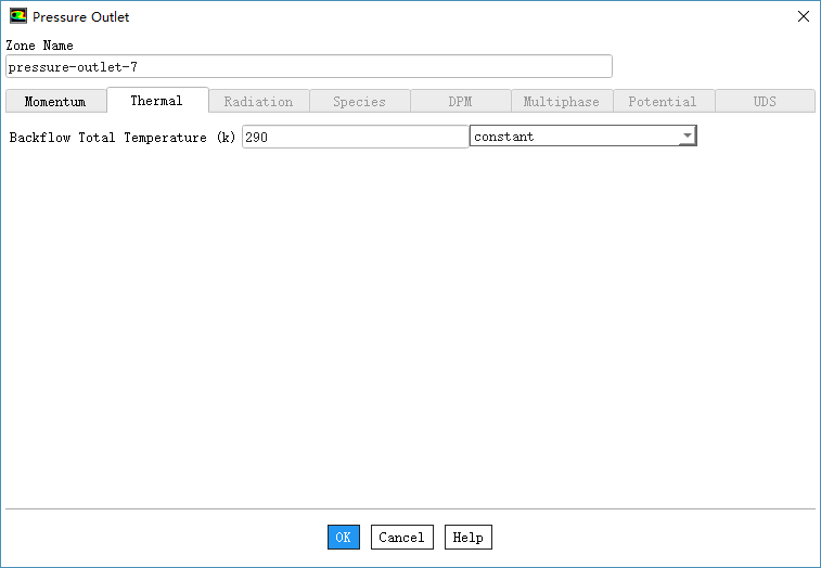 鼠标双击模型树节点Boundary Conditions > pressure_outlet-7弹出设置对话框
