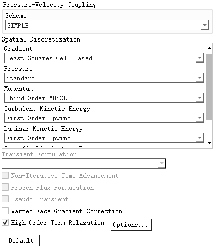 本案例采用稳态计算,利用转捩模型计算湍流。