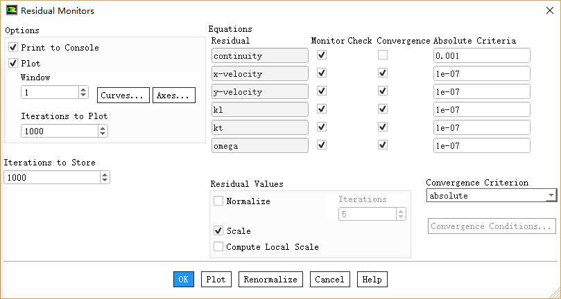 双击模型树节点Monitors > Residual,弹出设置对话框