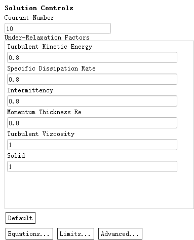 鼠标双击模型树节点Solution > Controls,右侧面板设置亚松弛因子,可采用默认设置