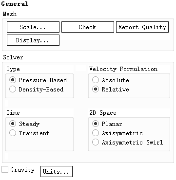 鼠标双击模型树节点General,右侧面板采用默认设置