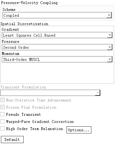 鼠标双击模型树节点Methods,右侧面板设置Scheme为Coupled,其他参数如下图所示设置