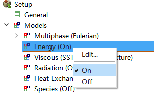 右键选择模型树节点Models > Energy,点击弹出菜单项On开启能量方程