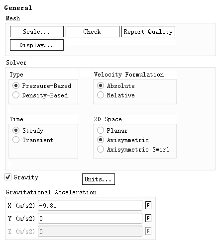 鼠标双击模型树节点General,右侧面板选择Axisymmetric