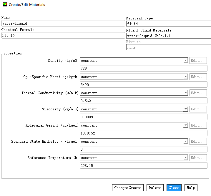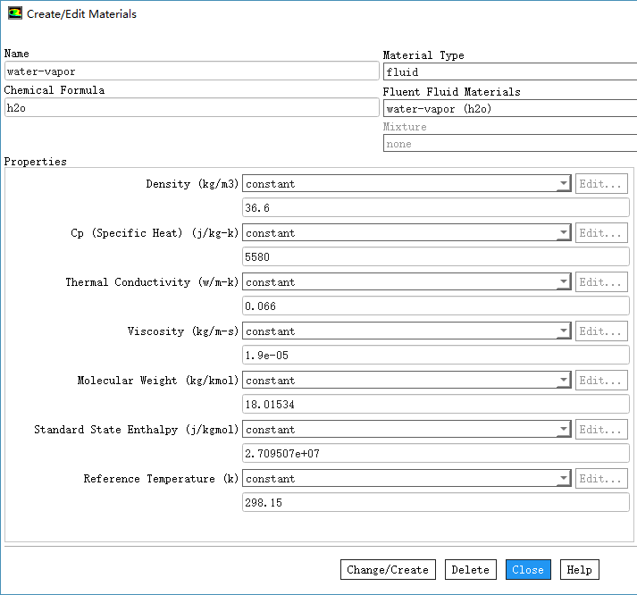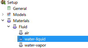 从材料库中添加材料water及water-vapor,并修改其材料参数