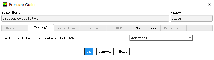 鼠标双击模型树节点Boundary Conditions > pressure-outlet-4> vapor,如下图所示设置出口气相温度