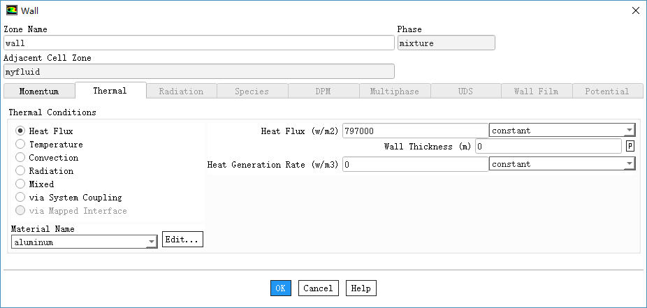 鼠标双击模型树节点Boundary Conditions > wall,如下图所示,设置壁面热流为797000 w/m2