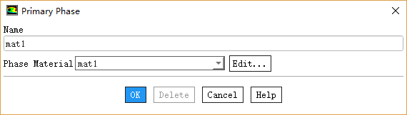 鼠标双击模型树节点Models > Multiphase > Phase > Primary Phase,弹出对话框中设置mat1为主相,并修改名称为mat1